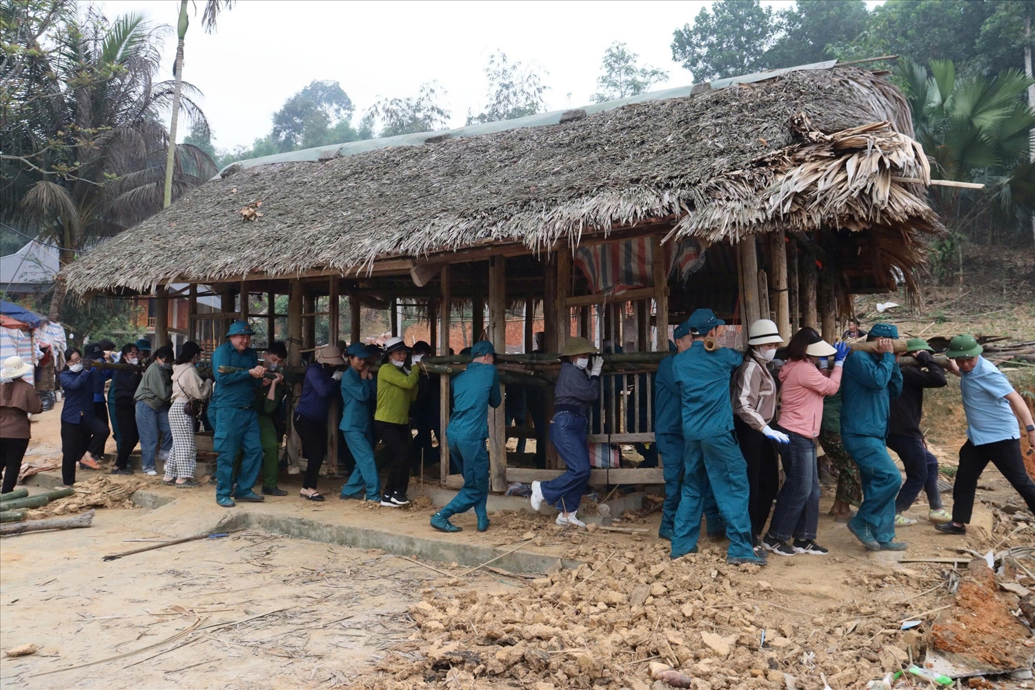 Xã Yên Sơn huy động cán bộ hỗ trợ người dân xóa nhà tạm.