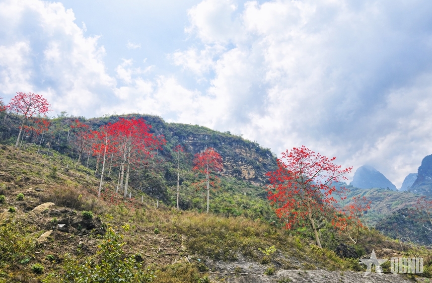 Sắc đỏ hoa Mộc miên nở rực trên triền núi đá xã Khâu Vai (Tuyên Quang),