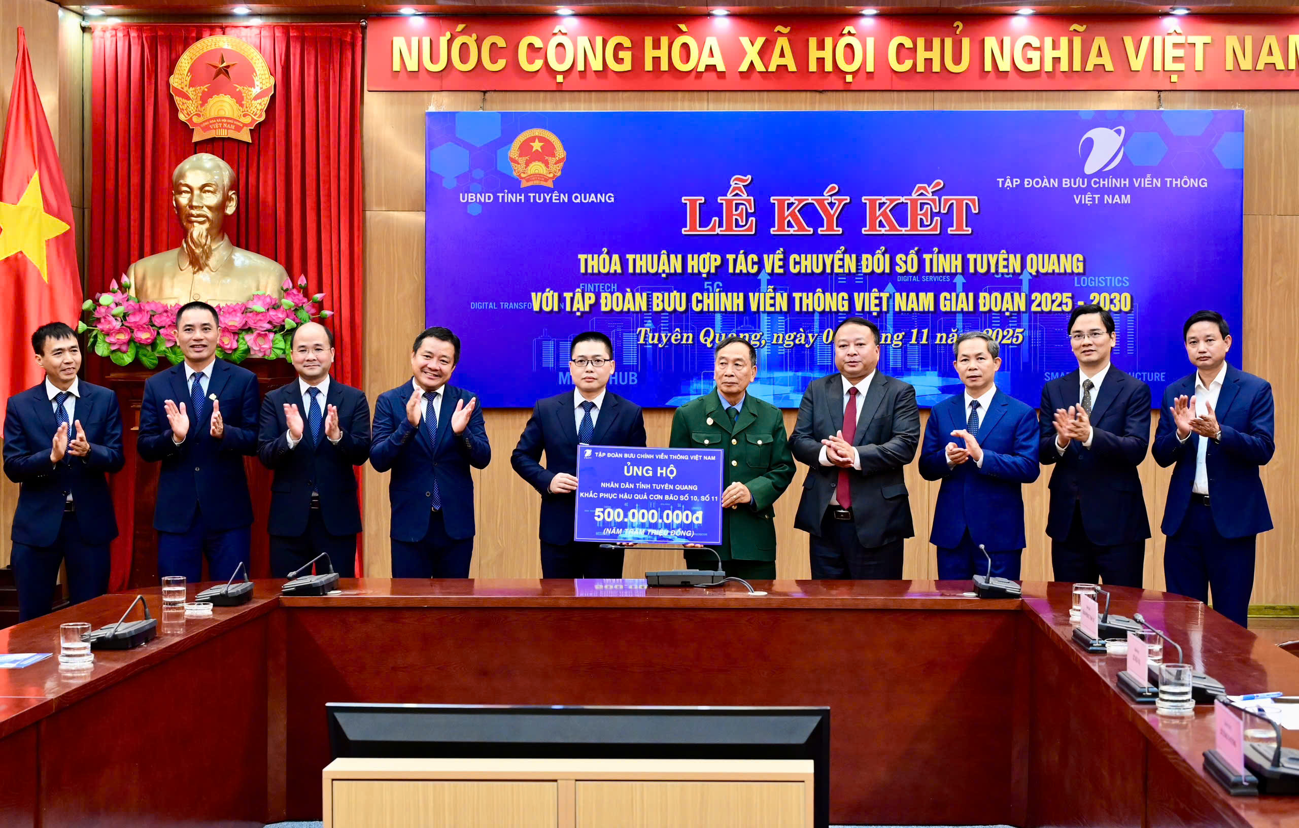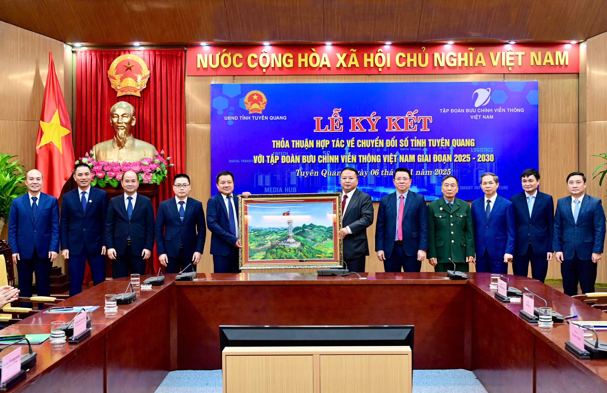 Tại buổi lễ, UBND tỉnh và Tập đoàn VNPT đã thực hiện ký kết thoản thuận hợp tác về chuyển đổi số giai đoạn 2025-2030. Theo thỏa thuận, 2 bên tăng cường hợp tác, hỗ trợ đẩy mạnh nghiên cứu ứng dụng công nghệ thông tin, công nghệ số trong xây dựng và phát triển chính quyền số, kinh tế số, xã hội số tại tỉnh Tuyên Quang. Thông qua Thỏa thuận hợp tác, 2 bên mong muốn phát huy tối đa thế mạnh, huy động nguồn lực tổng hợp để hỗ trợ nhau thực hiện tốt các chức năng, nhiệm vụ, góp phần mang lại lợi ích chung cho toàn xã hội.