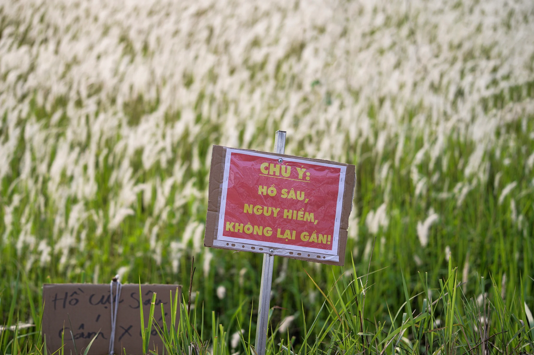 Để đảm bảo an toàn cho người tham quan, tại khu vực cánh đồng cỏ lau đã được gắn bảng cảnh báo để nhắc nhở người dân, đặc biệt là các bạn trẻ đến chụp ảnh, chú ý quan sát và giữ khoảng cách an toàn khi di chuyển trong khu vực.