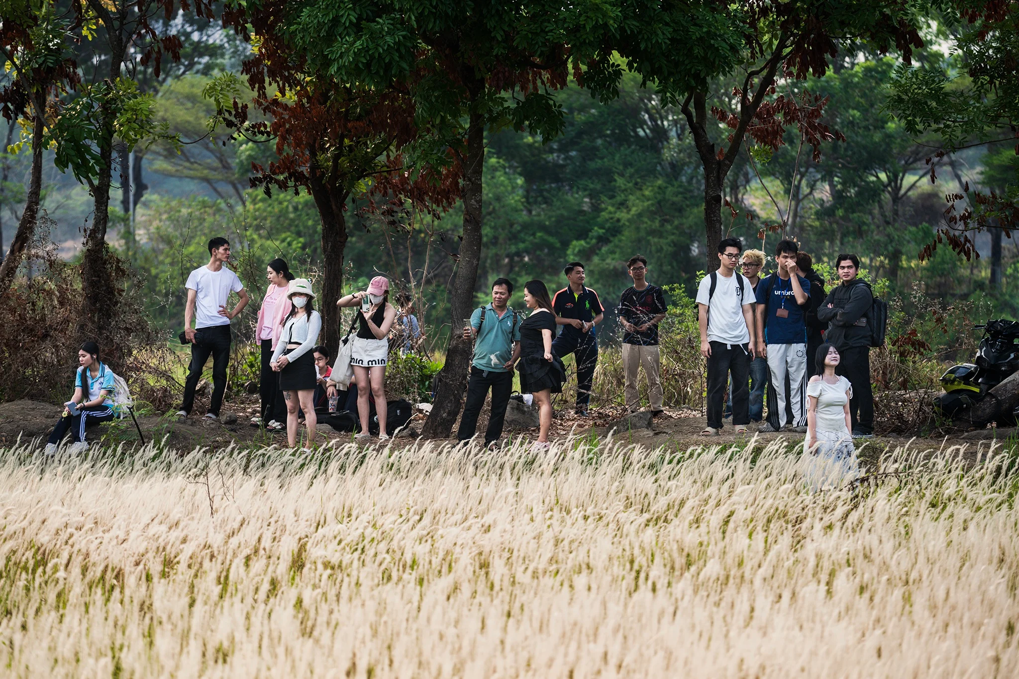 Trong những ngày thời tiết nắng đẹp, lượng người đến đây có xu hướng tăng mạnh vào cuối tuần. Nhiều nhóm bạn chọn đi theo nhóm để vừa chụp ảnh, vừa có thêm những trải nghiệm chung. Không khí tại cánh đồng vì thế trở nên nhộn nhịp nhưng vẫn giữ được nét nhẹ nhàng, thư thái vốn có.