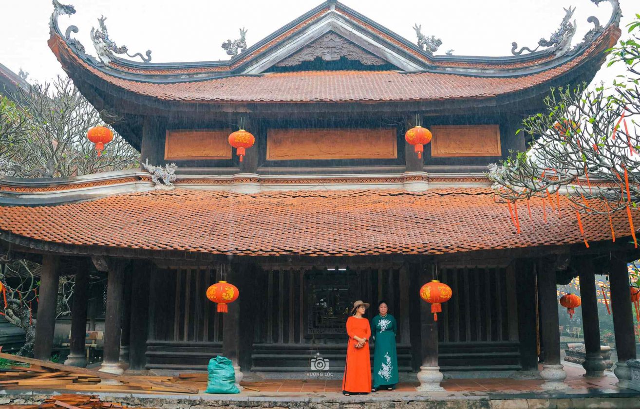 Chính điện rộng khoảng 260 m², được xây dựng chủ yếu từ các vật liệu truyền thống