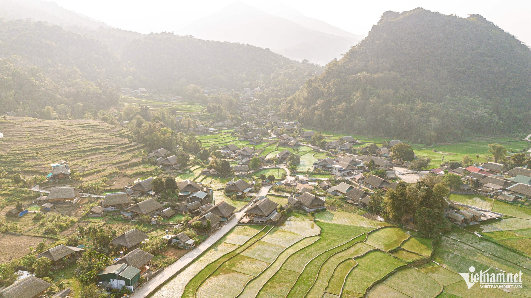 mang đến cảm giác bình yên với những ruộng bậc thang thấp mềm, uốn quanh và bao bọc lấy các ngôi nhà sàn.