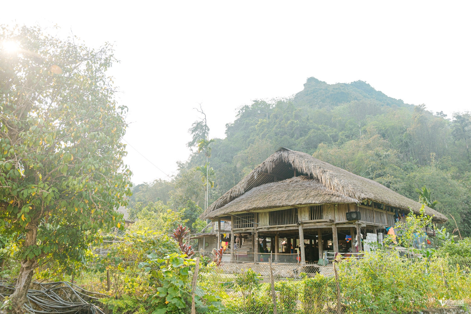 Toàn thôn hiện có 122 ngôi nhà sàn, trong đó hơn 90% vẫn giữ nguyên nét kiến trúc truyền thống với mái lá cọ,