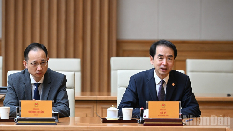 Đánh giá cao và trân trọng trước quyết tâm, sự quyết liệt của Chính phủ Việt Nam và Thủ tướng Chính phủ Phạm Minh Chính trong việc triển khai, cụ thể hóa nhận thức chung cấp cao giữa hai Đảng, hai nước những năm qua, Đại sứ Hà Vĩ khẳng định Đảng, Nhà nước Trung Quốc luôn coi trọng cao và ưu tiên thúc đẩy quan hệ với Việt Nam; sẵn sàng cùng Việt Nam tăng cường trao đổi chiến lược cấp cao, chia sẻ kinh nghiệm và lý luận về xây dựng Đảng, quản trị đất nước, nâng tầm hợp tác trong các lĩnh vực trọng yếu, thường xuyên gồm ngoại giao-quốc phòng-công an, qua đó củng cố tin cậy chính trị cao hơn.