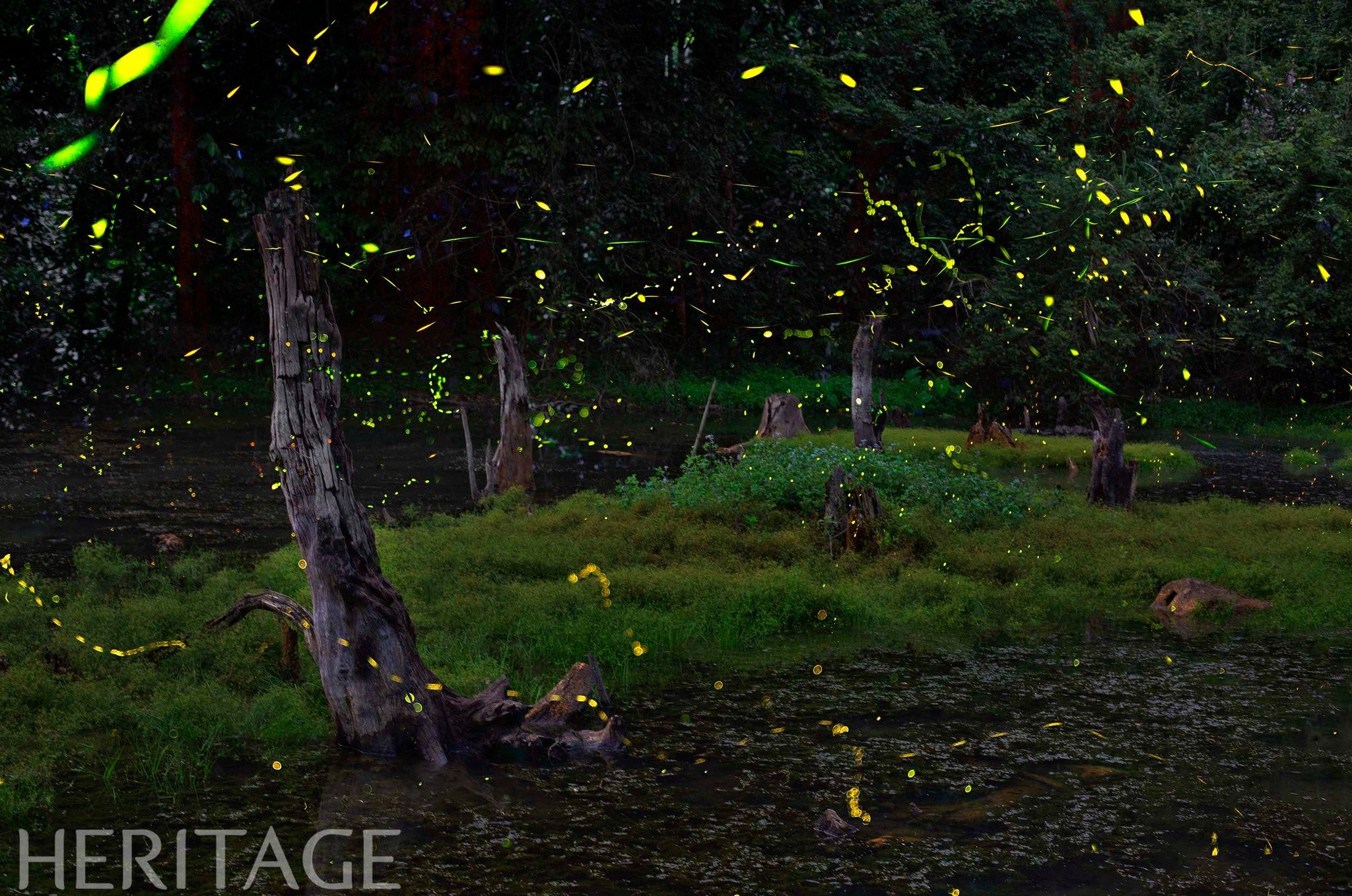 vũ điệu ánh sáng của hàng ngàn con đom đóm trong rừng sâu.