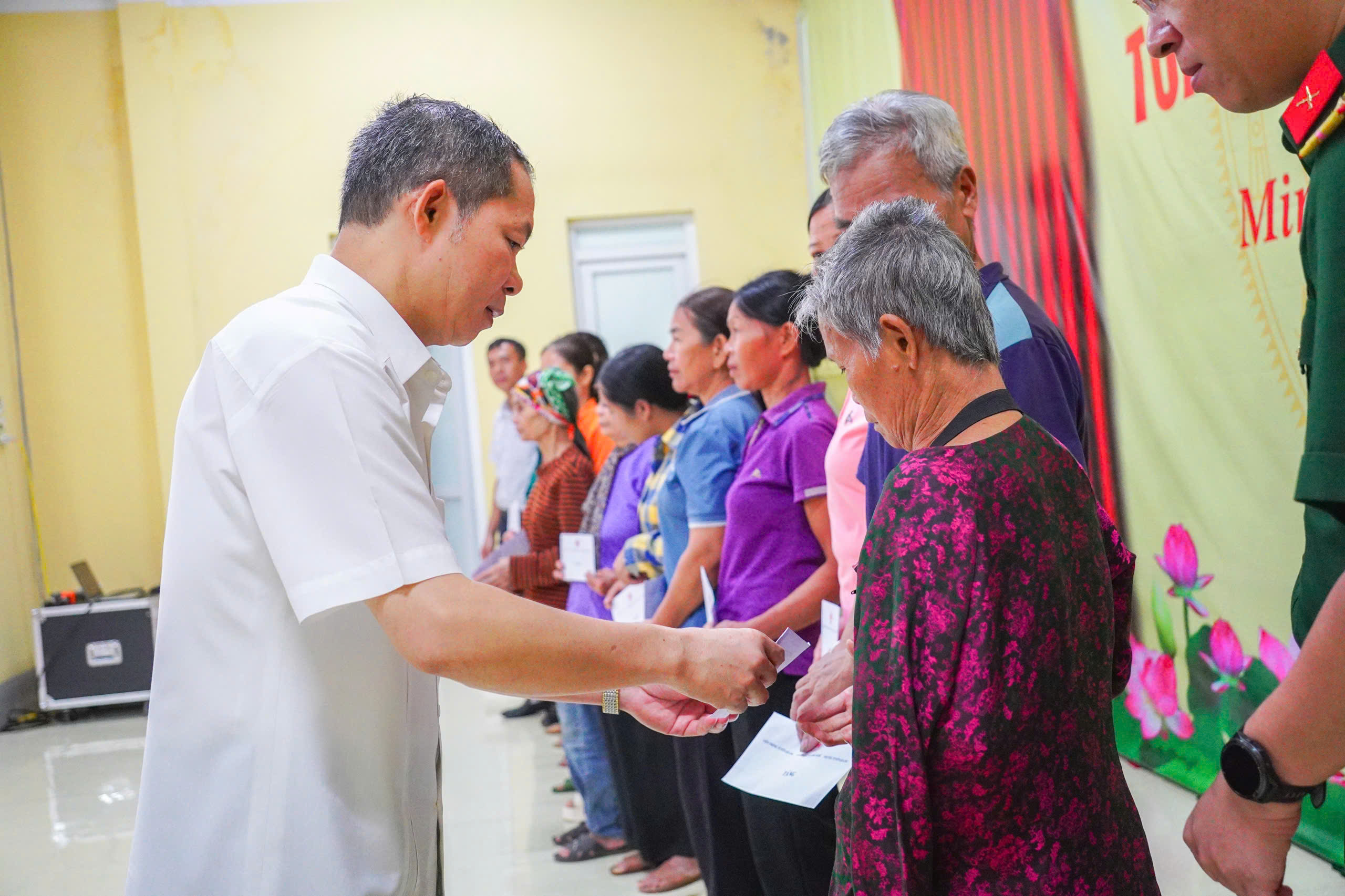 lãnh đạo các doanh nghiệp viễn thông tặng quà các hộ dân xã Minh Thanh tại Ngày hội