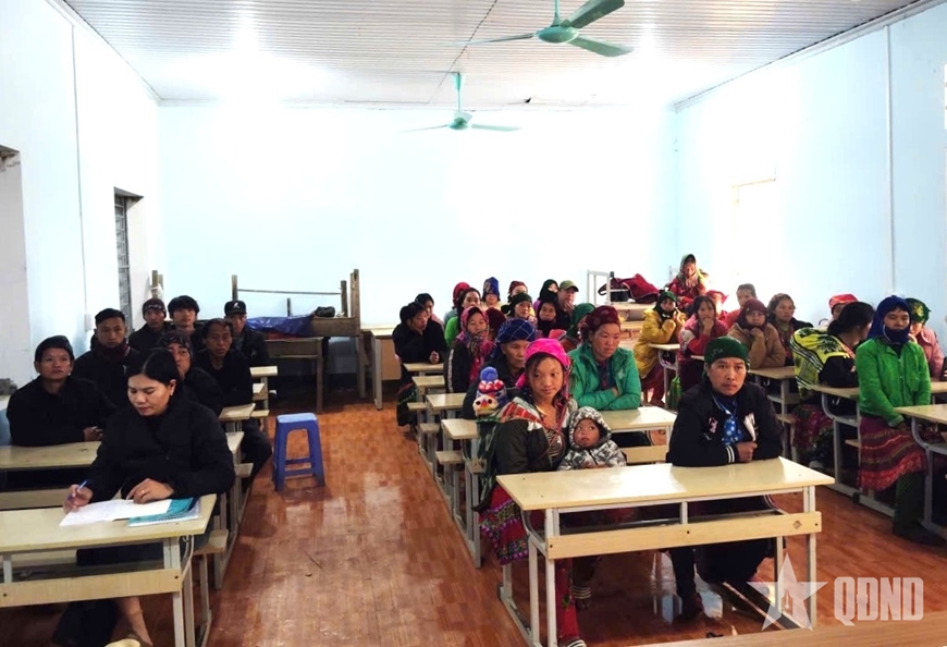 Công an xã Sơn Vĩ (Tuyên Quang) tuyên truyền, phổ biến pháp luật cho nhân dân thôn Lẻo Chá Phìn A.