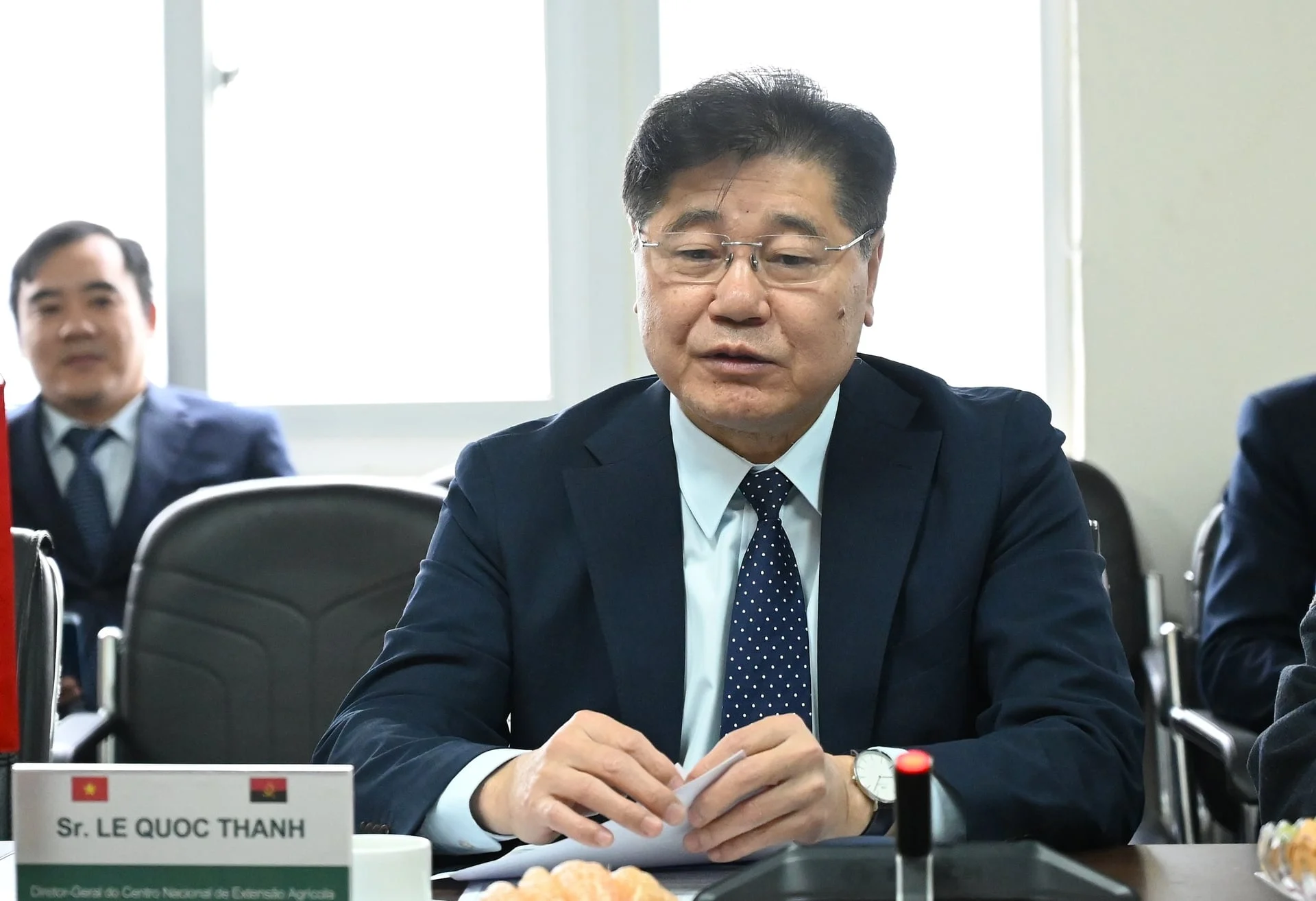Sáng 25/12, ông Lê Quốc Thanh, Giám đốc Trung tâm Khuyến nông Quốc gia tiếp và làm việc với đoàn công tác Bộ Nông nghiệp và Lâm nghiệp Angola. Cuộc họp diễn ra ngay sau khi đoàn công tác Bộ Nông nghiệp và Môi trường có chuyến thăm tại Angola từ 9-14/12 về tăng cường hợp tác nông, lâm nghiệp.