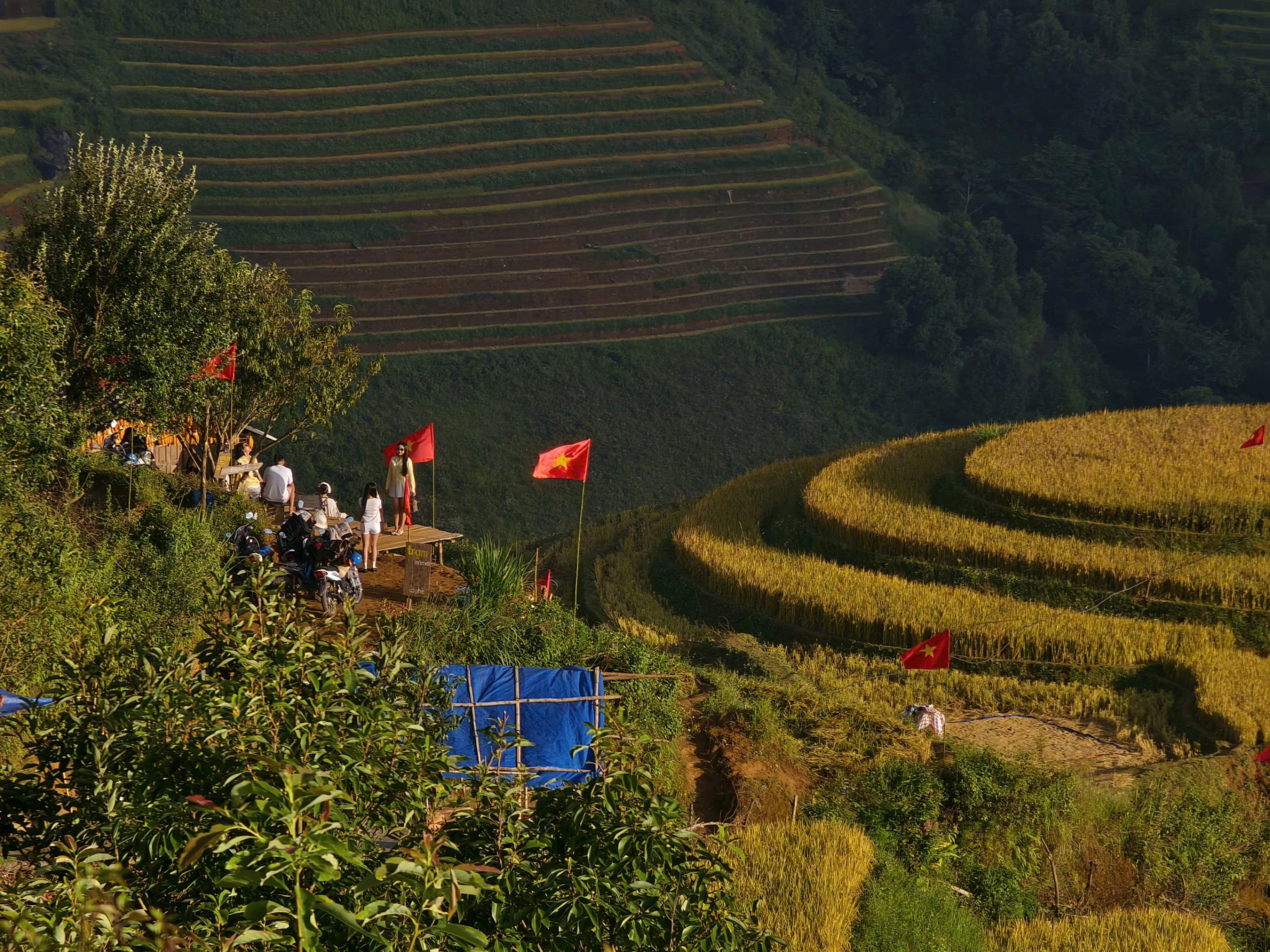 Hiện người dân địa phương dựng một số lán trại nhỏ để khách dừng chân nghỉ ngơi và chụp ảnh. Khu vực này chưa phát triển dịch vụ du lịch, vì vậy du khách thường chọn lưu trú tại Tà Xùa, sau đó di chuyển khoảng 20 km đến ngắm lúa.