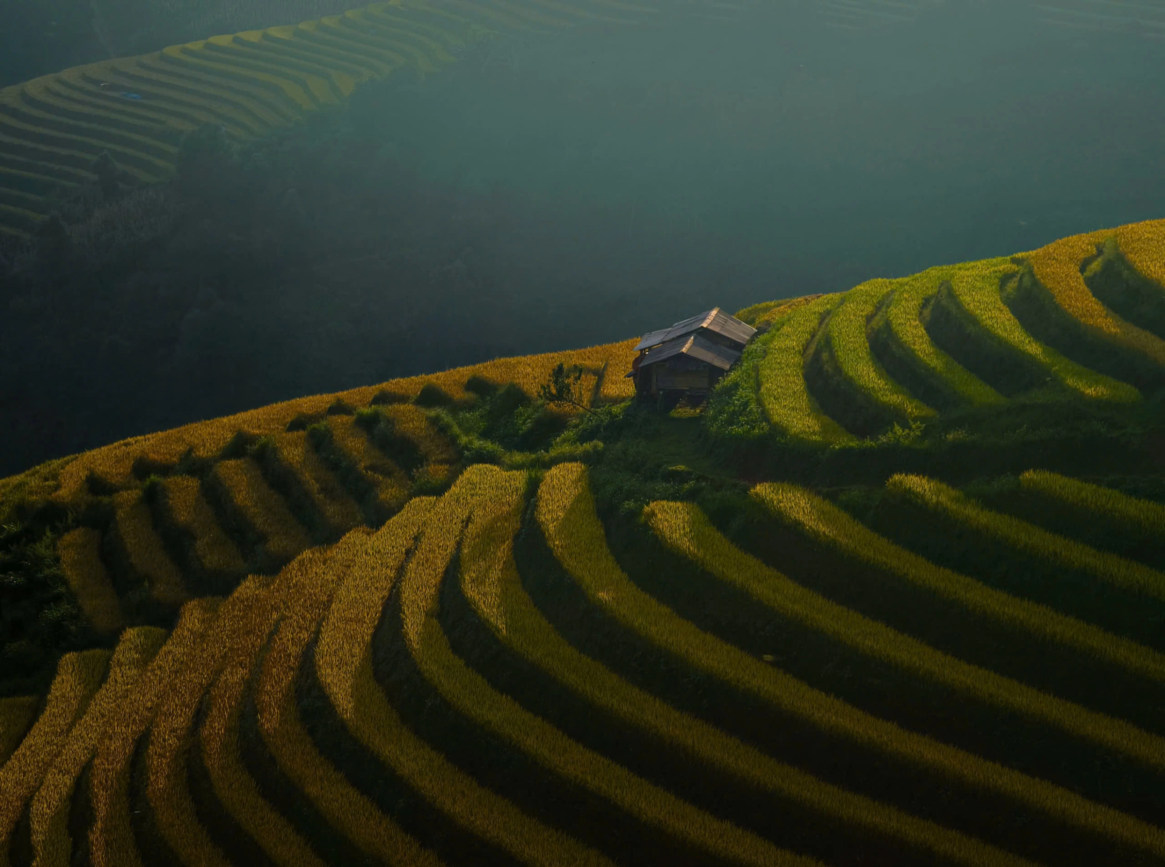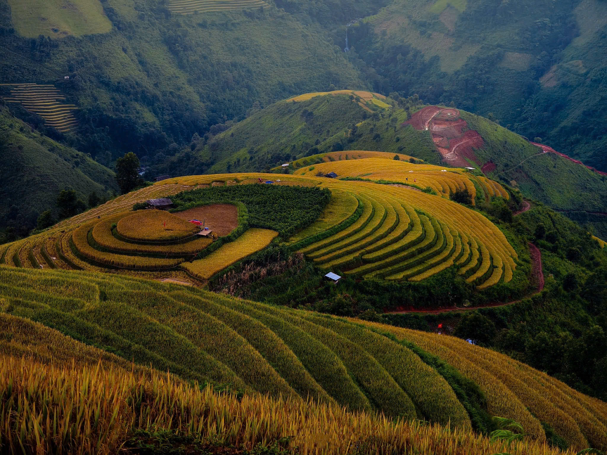Những ngôi nằm giữa thung lũng, giữa những ruộng bậc thang chín vàng.
