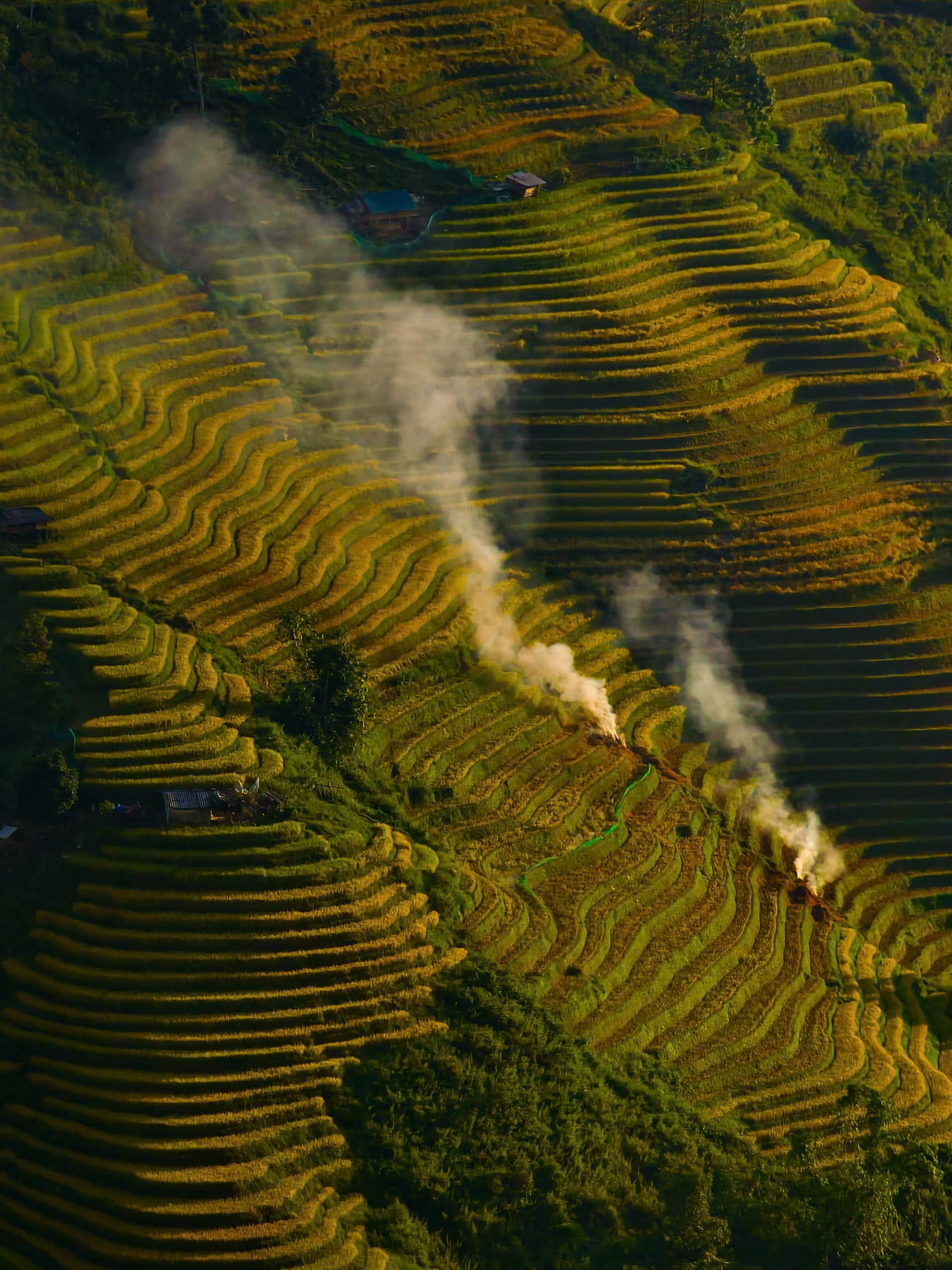 lần này là ruộng bậc thang ẩn hiện trong làn khói dưới chân núi Sa Mu.