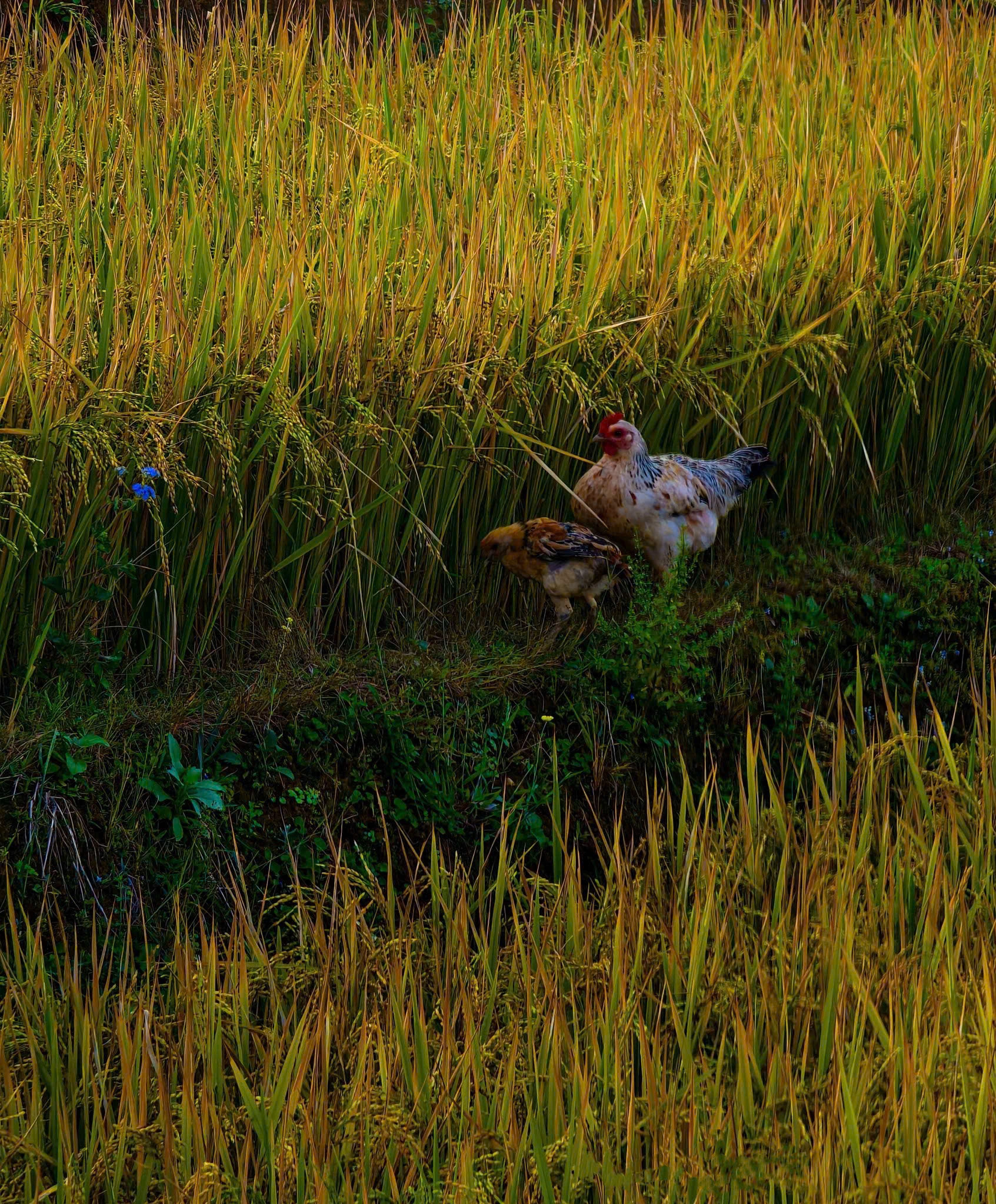 Trong hành trình ngắm lúa và săn ảnh, nhiếp ảnh gia ghi lại những khoảnh khắc yên bình của người dân địa phương sau khi gặt lúa.