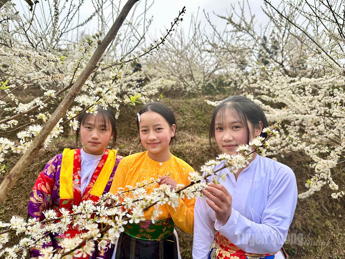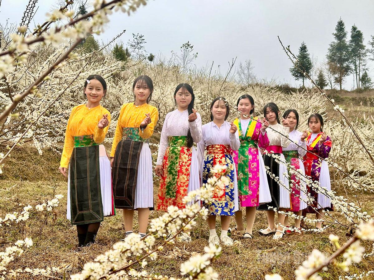 Hoa mận nở là lúc các sơn nữ diện những trang phục đẹp nhất cùng khoe sắc.