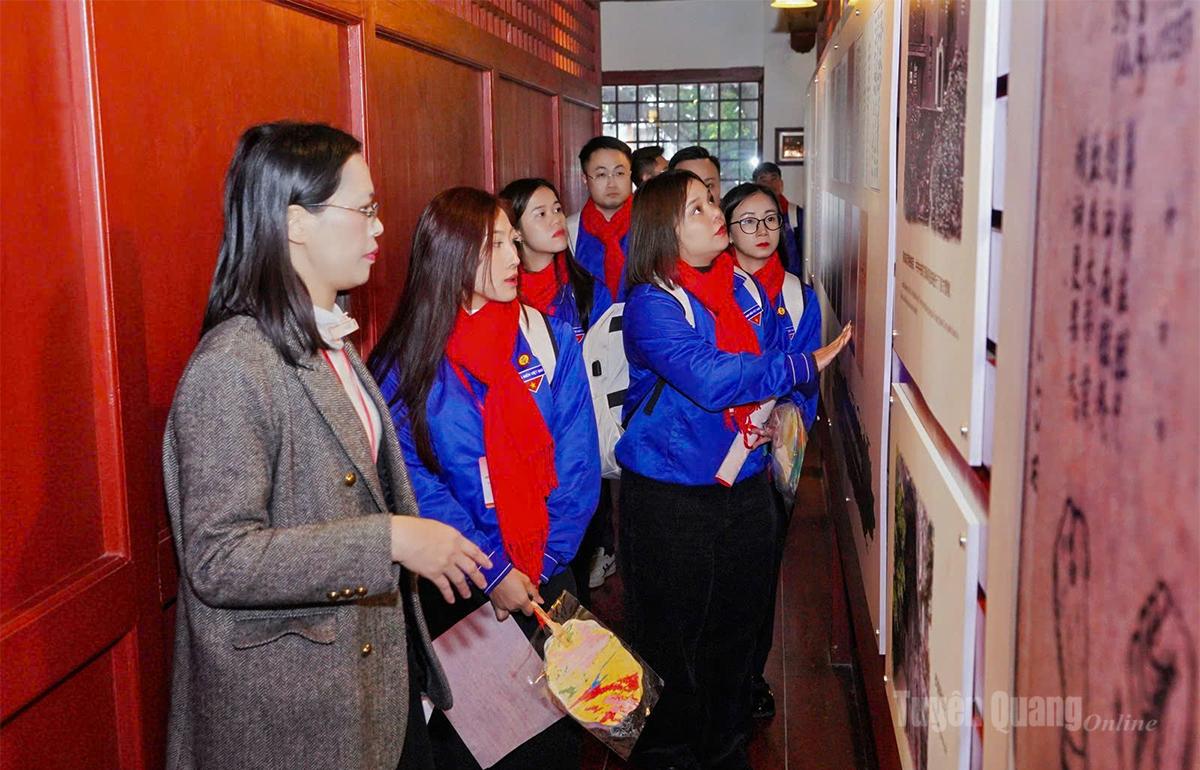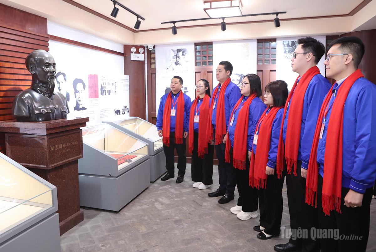 Đoàn thanh niên Tuyên Quang và đại biểu tham quan gian trưng bày giới thiệu về Chủ tịch Hồ Chí Minh.