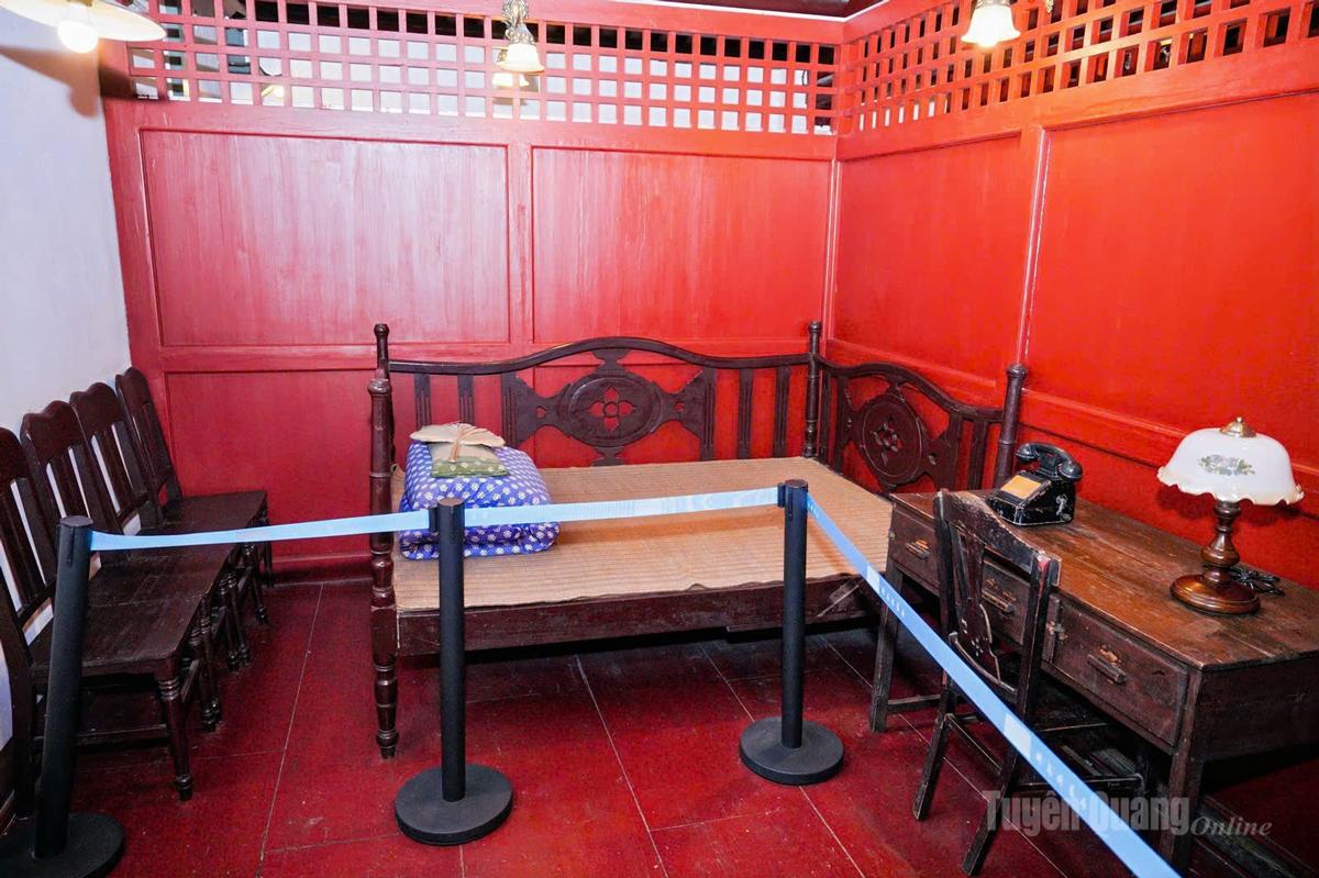 Góc phòng trọ đơn sơ với bộ bàn ghế, giường ngủ - nơi Bác Hồ từng sinh sống và làm việc tại Liễu Châu.