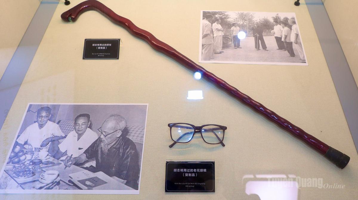 Chiếc gậy và kính mắt Chủ tịch Hồ Chí Minh sử dụng khi hoạt động tại Liễu Châu.